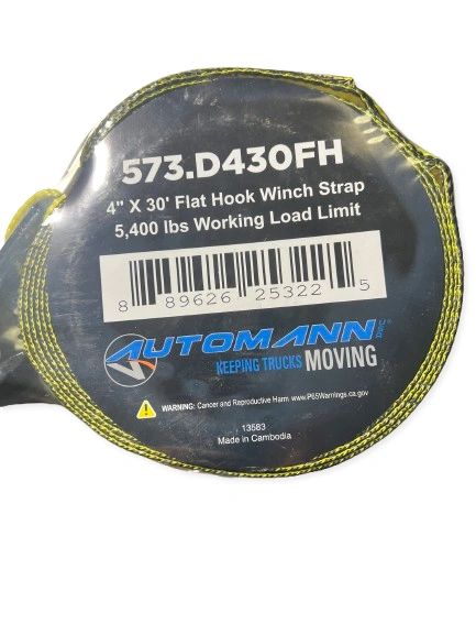 573.D430FH – Flat Hook Winch Strap 4in X 30FT