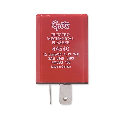 Grote 44540 is a 3-pin electromechanical flasher designed for vehicle lighting systems. Here’s a detailed overview of its specifications and features: