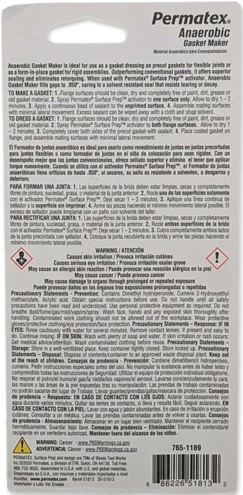 Permatex 51813-6PK Anaerobic Gasket Maker, 50 ml Tube